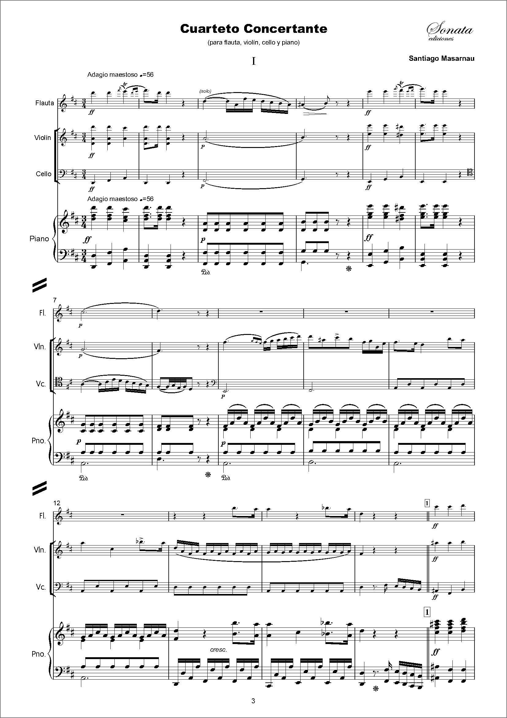 MASARNAU, S.: Cuarteto concertante (flauta, violín, cello y piano) cantidad